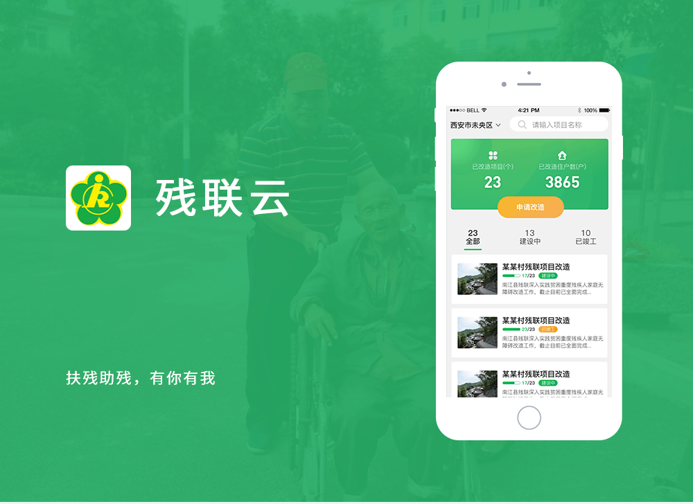 残联云APP-为实现残疾人基建工程改造项目易监管、易实施、易整合,拟开发残联云精准扶贫应用,辅助残疾人基建施工改造提升效率及拓展价值。